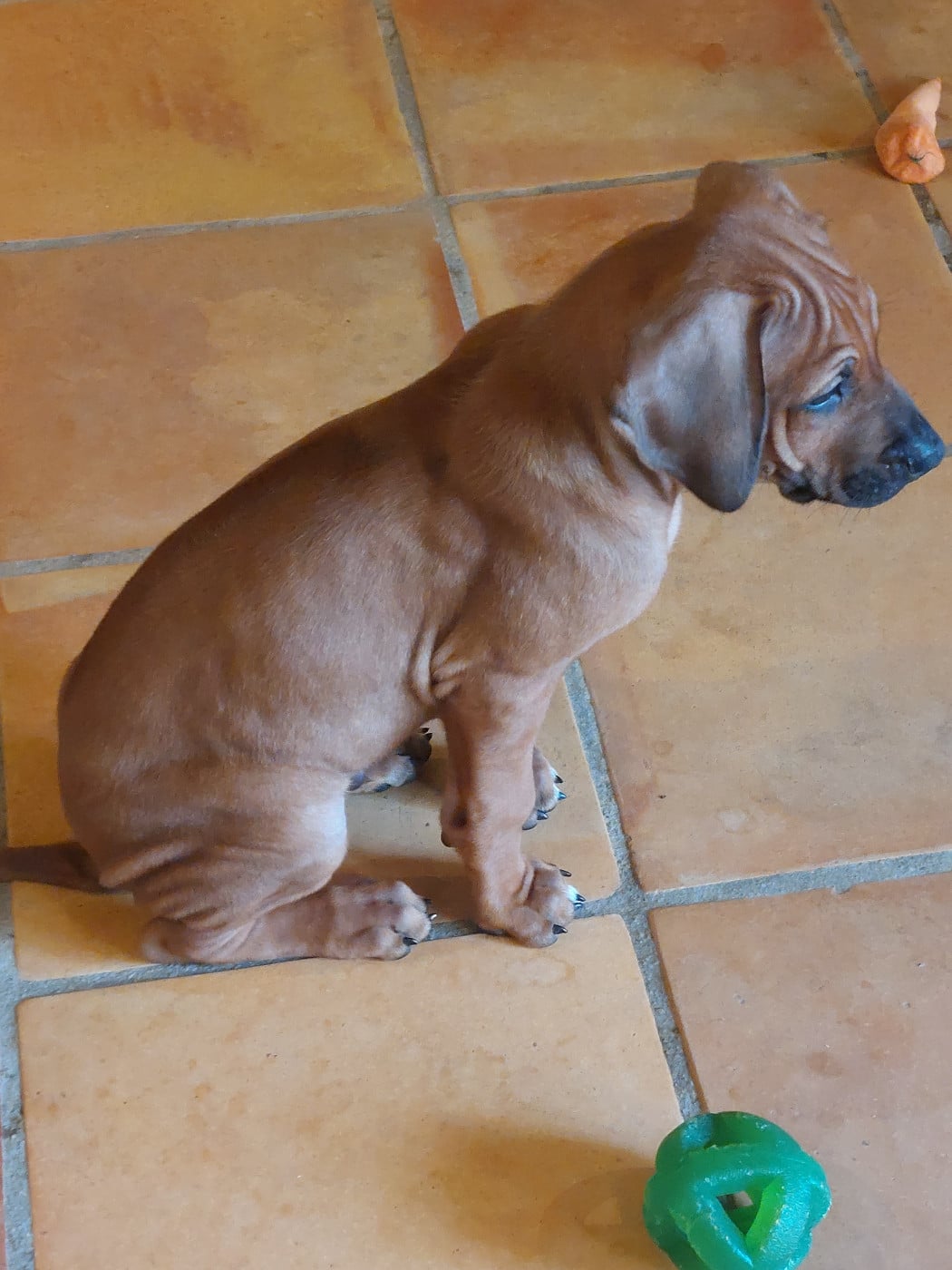 Il est vacciné, pucé et vermifugé 3 fois. Il partira avec un certificat de bonne santé effectué par mon vétérinaire ainsi qu'un kit chiot avec son aliment habituel pour 10 jours.